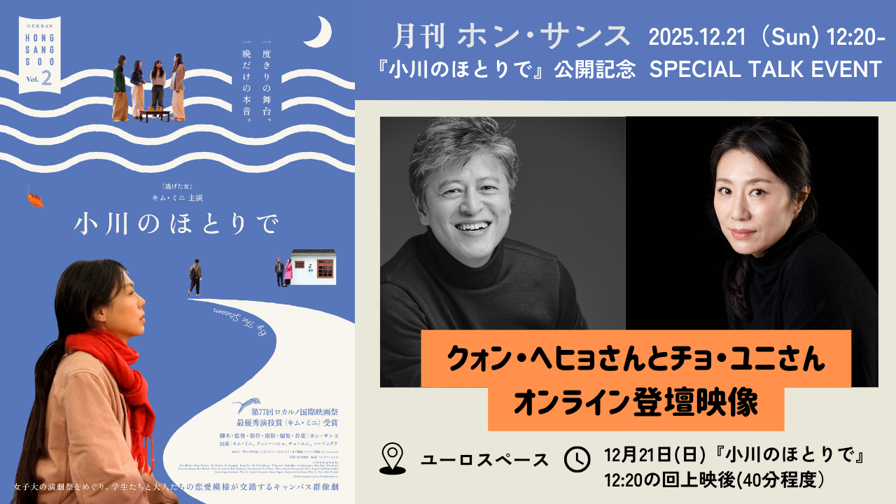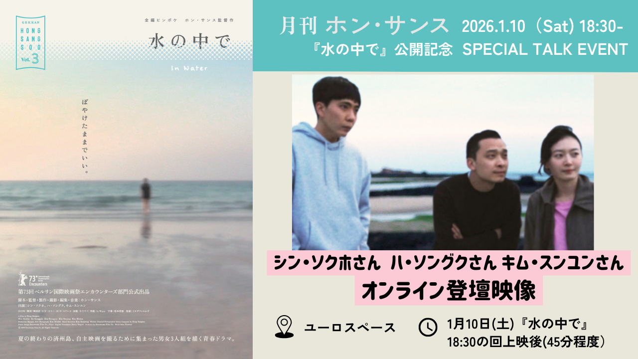 謎めいた映画世界に導かれるように、この秋、ホン・サンスの“いま”に出会える、異例の企画がスタートする。2025年11月から2026年3月まで、2023年以降につくられた新作5本を5カ月連続で公開する「月刊ホン・サンス」。さらに、ユーロスペース限定で、新作にリンクしたテーマで過去作を振り返る特集「別冊ホン・サンス」も同時開催。これまで数々の作品に魅了されてきたファンにとっては、改めて彼の作品の変化を辿り直す絶好の機会に、そしてこれからその映画世界に触れる人たちにとっては、5カ月間集中してホン・サンス映画に触れていく新たな入り口になるに違いない。